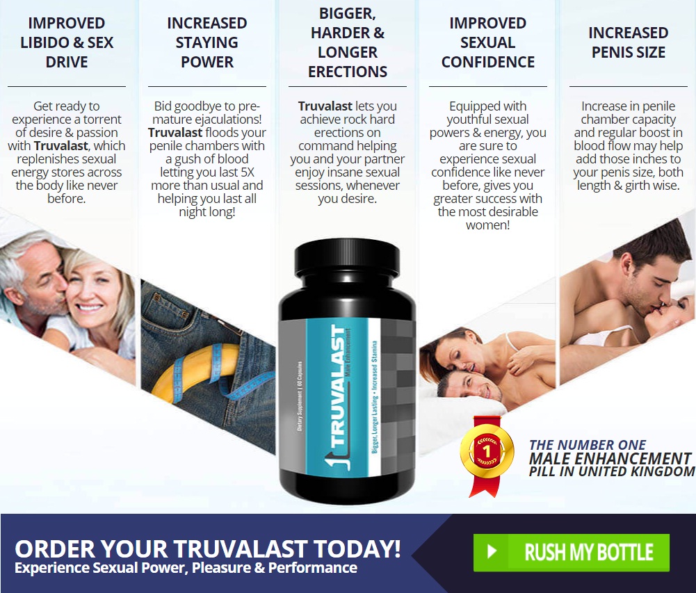 Truvalast is the powerful supplement designed to restore the sexual performance, while helping to achieve mammoth size erections and arousals on bed. The formula enables male to last longer on bed and satisfy their sexual partner with intense orgasms. It allows males to last longer with better arousal and sexual surge and it heightens the excitability on bed for peak performance. It boosts the production of key sexual hormone in body called testosterone and it helps in regulating the biological functioning of males, while supporting them to have a better and satisfying sexual life.