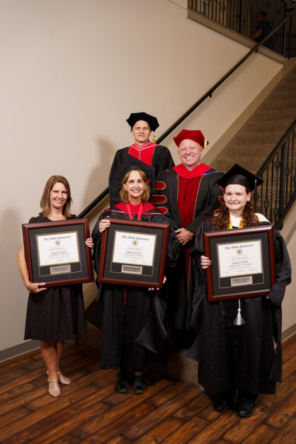 The Bible Seminary of Katy, Texas celebrated its fifth class of graduates on August 16, 2020 at Family Life Church in Sugar Land, Texas. Two Master’s degree graduates and eight Bible Certificate graduates crossed the stage in a joy-filled, God-honoring ceremony. TBS also posthumously awarded a Master of Arts in Biblical History and Archaeology degree to the family of Durwin Kicker, and a Bible Certificate to the family of Rosemary Mata.
