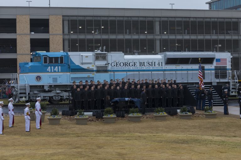 No. 4141 Engine led the Bush funeral train from Houston to College Station in December 2018, when the former president was laid to rest here alongside First Lady Barbara Bush.