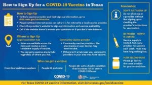 I have been working closely with the Governor's office, Texas Department of State Health Services (DSHS), and a number of representatives from the healthcare field to get information out about the COVID-19 vaccine.