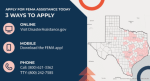 CONTACT YOUR INSURANCE PROVIDER: Just like in the case of a flood, many people will be contacting their homeowners or renters insurance company all at once. Gov. Abbott has recommended that you contact your insurance company or agent now and set up a file number for your claim, to speed up your recovery once the extent of any damage is discovered. Take plenty of pictures and document everything that was damaged or destroyed by the water.