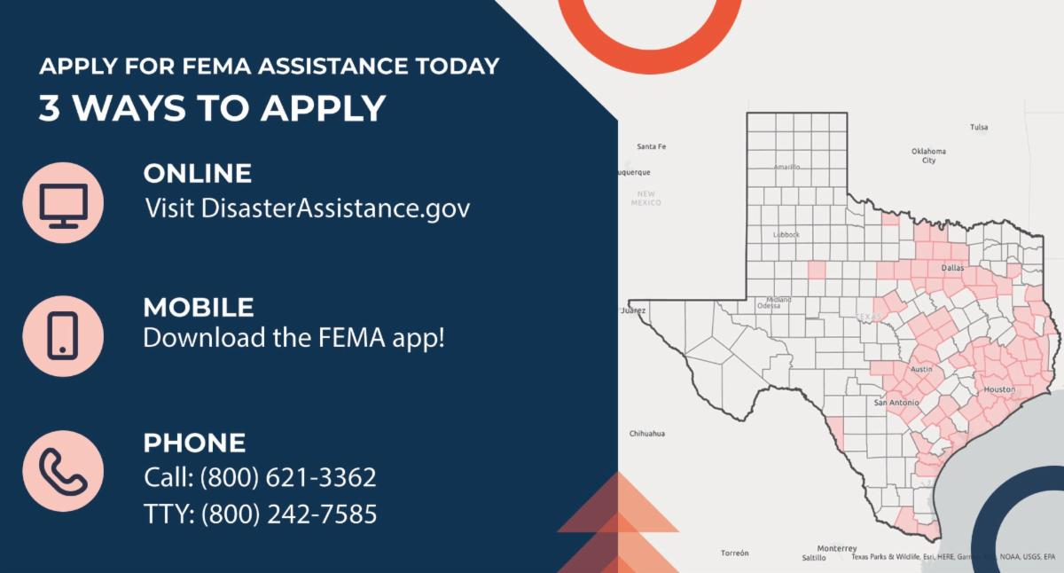 FEMA RESPONSE: Governor Abbott announced that the White House has partially approved Texas' request for a Major Disaster Declaration (DR-4586-TX). The Governor requested the Major Disaster Declaration on Thursday for Individual Assistance and Public Assistance in all 254 counties. The White House approved the request for Individual Assistance in 77 counties (including Harris County) and for Public Assistance (Emergency Protective Measures Only) in all 254 counties.