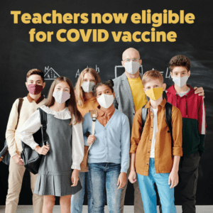 On March 3, Texas Department of Emergency Management (TDEM) announced that teachers and child care providers will now be considered part of the priority group to be eligible to receive the COVID vaccine.