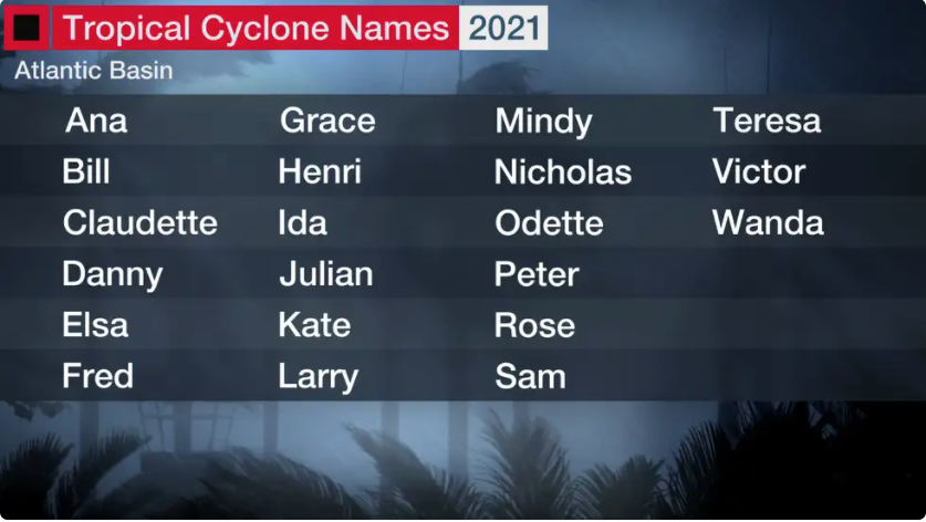 Storm names for the 2021 hurricane season (The Weather Channel)[/caption]