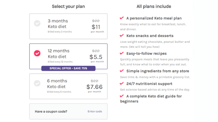 There are three subscription options. The Keto Cycle price varies depending on the Keto Cycle promo code and your personal requests.
