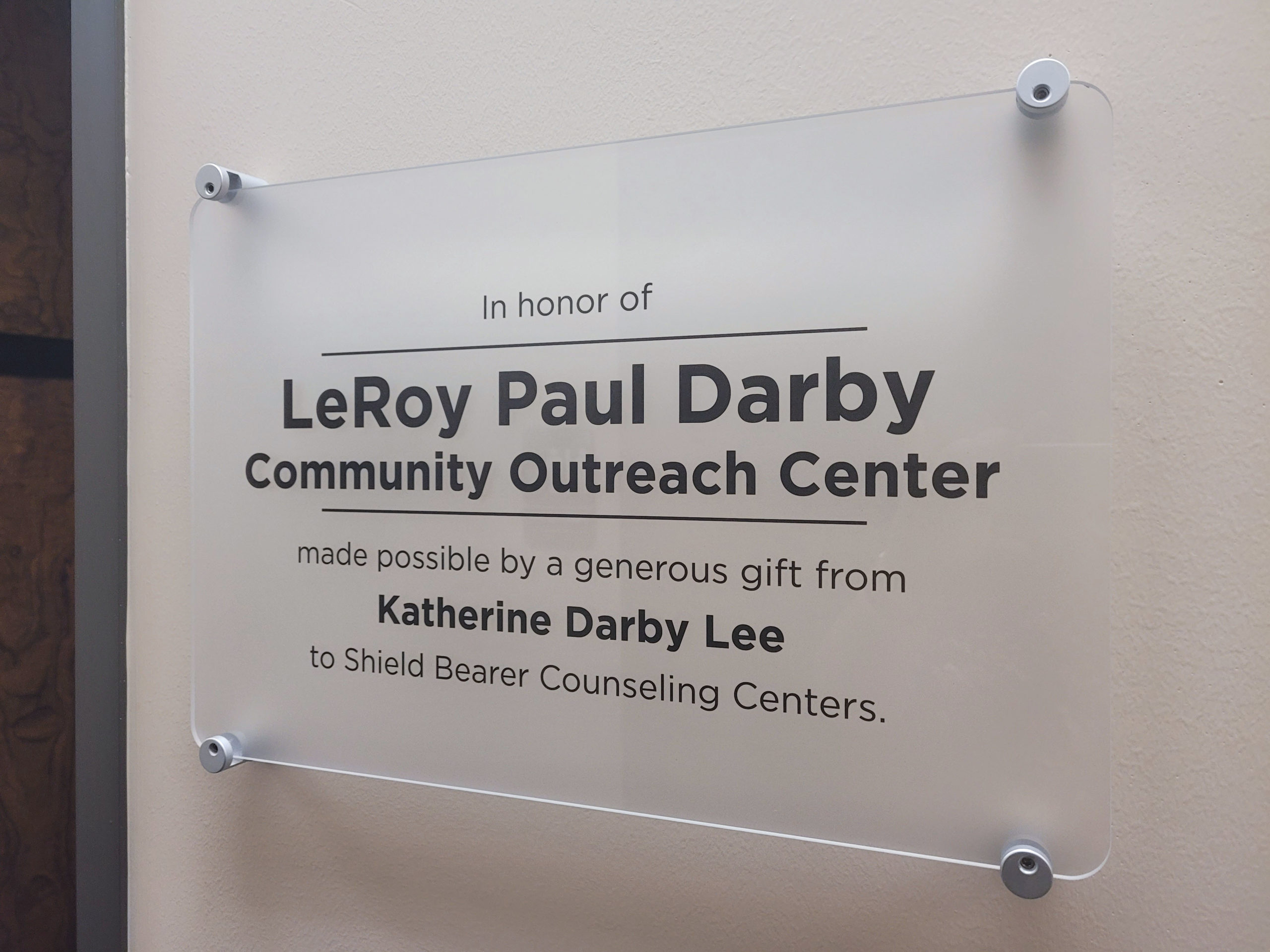 Counseling Centers will celebrate the naming of its new Community Outreach Center on February 25, 2022 at 2:30 pm. The room will be named in honor of LeRoy Paul Darby, the father of Katherine Darby Lee who currently serves as chair of the Board of Directors for Shield Bearer Counseling Centers.