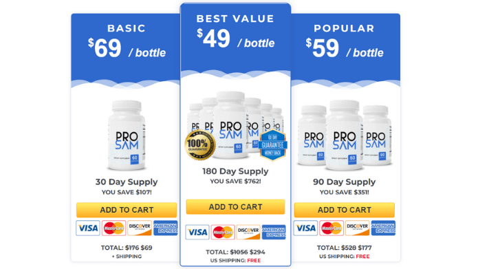 official website, you don't only get to buy the genuine ProSam supplement; you also get the freedom to choose between three different packages with three different prices made specifically to suit your needs and budget.