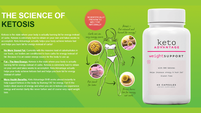 Here are the benefits of the Keto Advantage Keto Burn diet: The Keto Advantage provides you with the nutrients you need to jump-start ketosis and maintain it, providing you with a slew of benefits like improved energy better moods, and quick weight loss. Keto Advantage supplement even works without maintaining any strict diet. That means special hours of the day to plan meals—no limitations on diet selection, no preparation or cooking required.