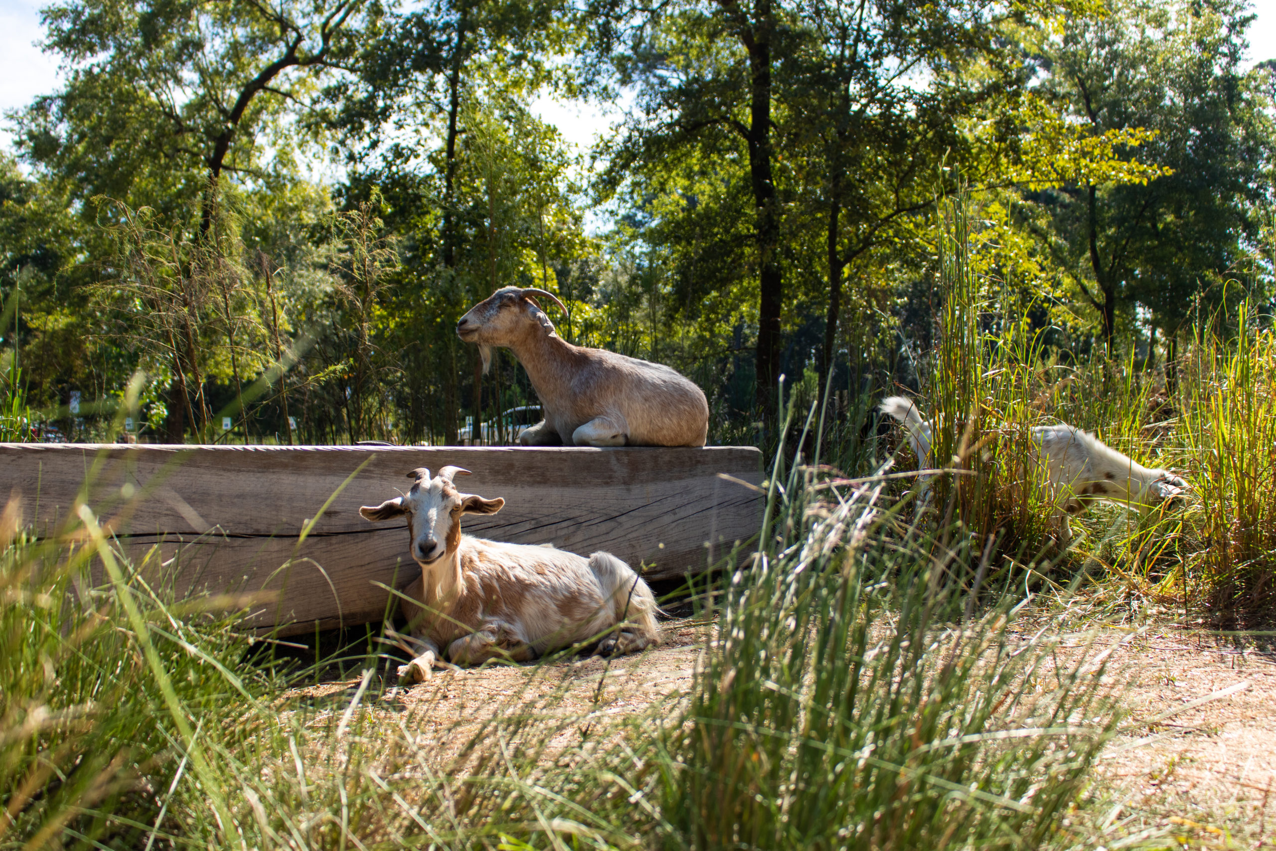 The goats from Rent-a-Ruminant® Texas return to the Houston Arboretum May 3 – 10 to “mow” the overgrown vegetation in the 2.3 acre area encircled by the 610 Parking Loop. The popular animals made appearances in October and November of 2020 when they worked on the vegetation and invasive species around the Woodway Loop ponds and 7-acre savanna areas respectively, while in March 2021, they “landscaped” the 2.6-acre Meadow area.