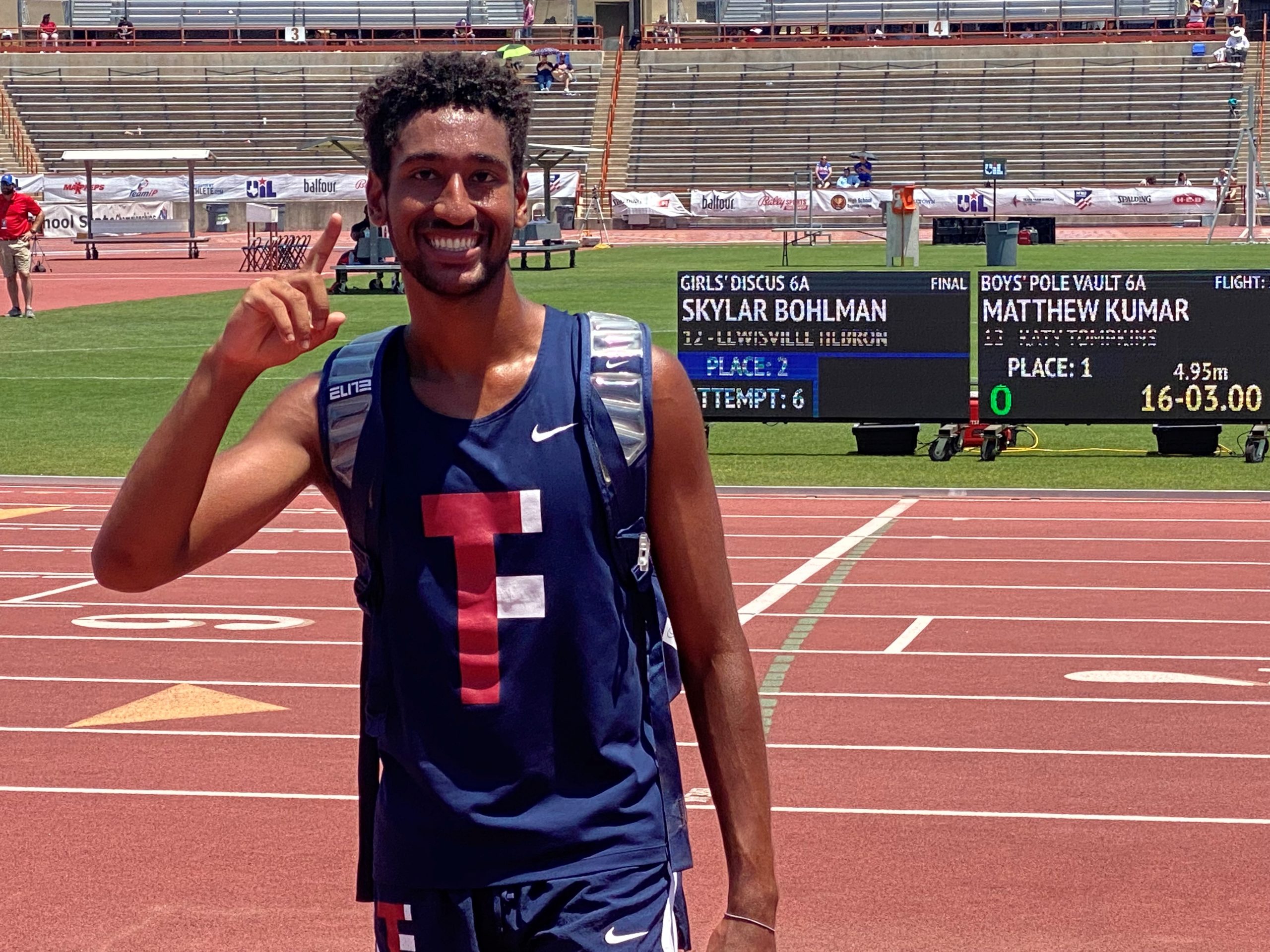 100M and 300M hurdles, along with Seven Lakes High School senior Matthew Rueff in the Boys Shot Put and Tompkins High School senior Matthew Kumar in the Boys Pole Vault event. Numerous Katy ISD athletes were also awarded silver and bronze medals and placed in the Top 10.