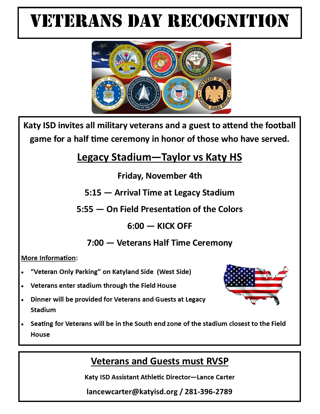 - Seating for Veterans will be in the South end zone of the stadium closest to the Field House