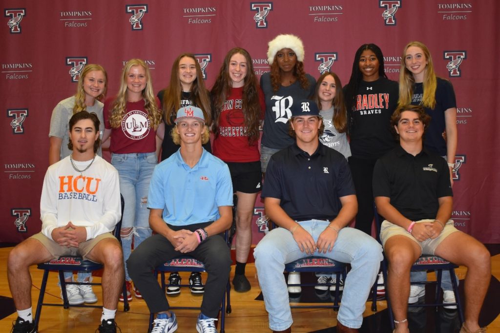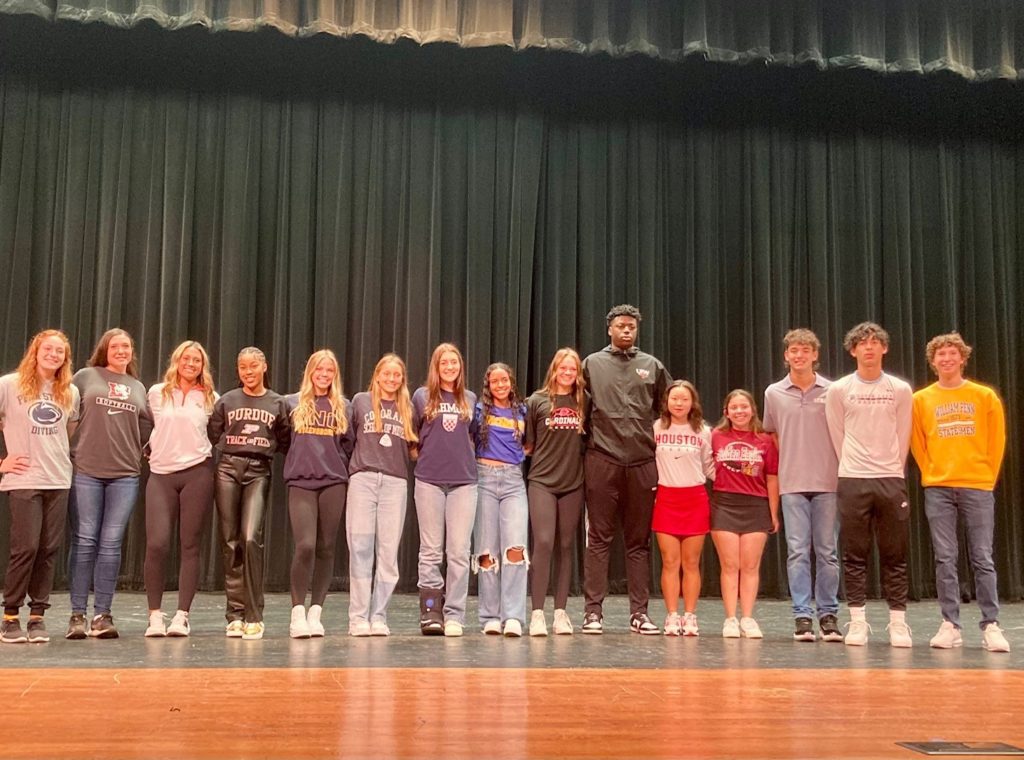 A total of 45 Katy ISD student-athletes formally committed to their college or university of choice before heading off to Thanksgiving break. Their countless hours of practice, sweat and effort were recognized during a memorable celebration in which each athlete signed a binding letter of intent for a collegiate sport. Congratulations to the following signees: