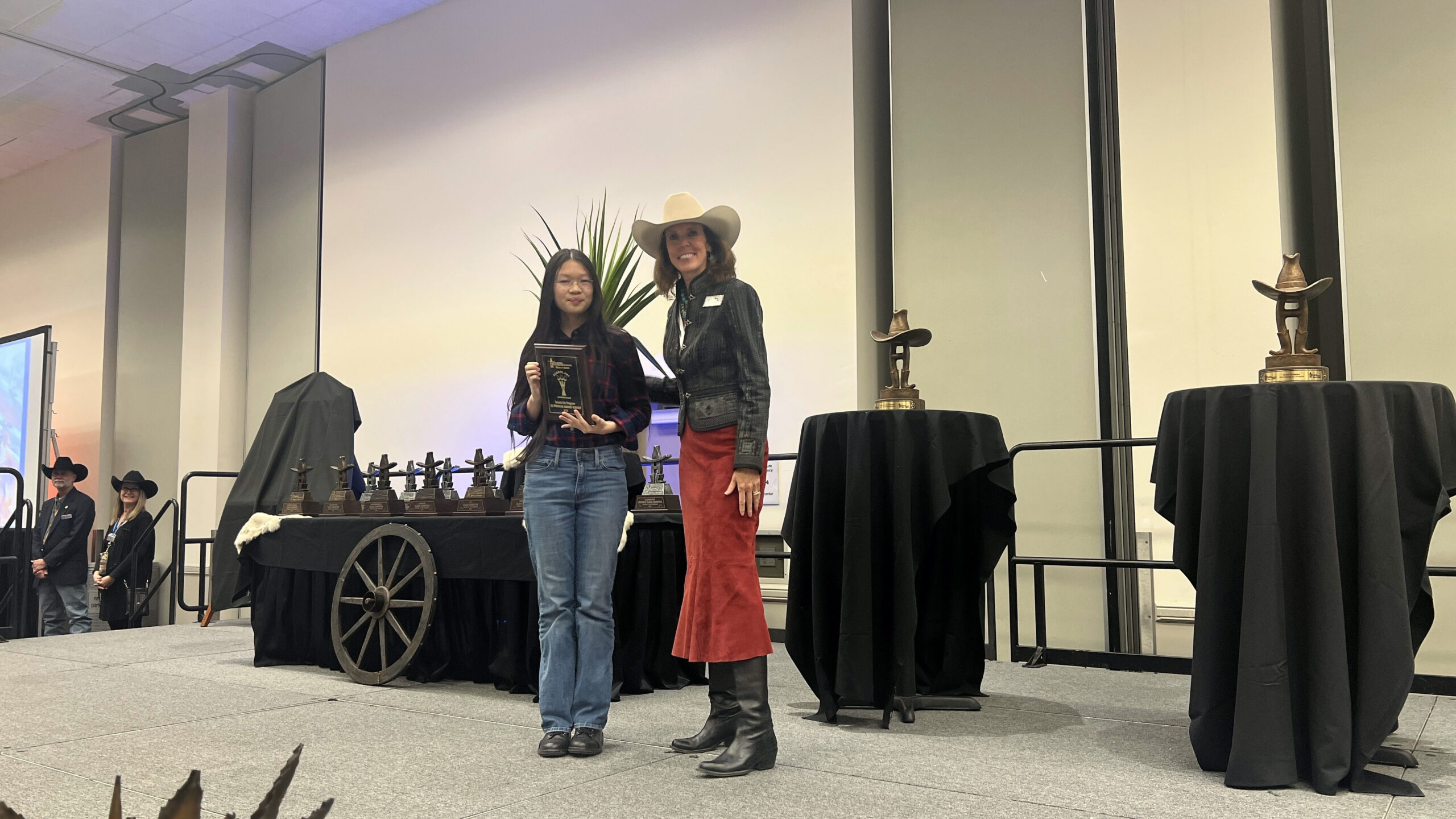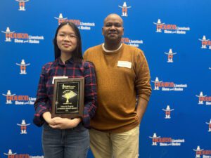 FBCA Junior Joana Liu was recently named a 'Top Young Artist,’ and her artwork was awarded as a ‘Top Work of Art’ by the Houston Livestock Show and Rodeo School Art Program. Joana Liu was selected along with 72 other students out of 4,000 entries to advance to the Grand Champion and Reserve Champion level of judging. She ranked 25th out of the 72. Joana and FBCA Art Teacher, Mr. Ryan Baptiste, attended the HLSR School Art Program Awards Ceremony this past Saturday, February 11.