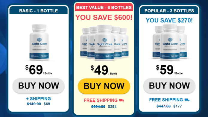 The company's official website is the only place to buy SightCare. The manufacturer offers a choice of packages to choose from, but to see what's available, you must first provide your contact information. Free shipping is offered to customers who order two or more bottles. Customers who only want one bottle must pay $9.99 for shipping.