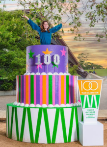 Happy 100th Birthday Miller Outdoor Theatre. Miller Outdoor Theatre celebrates its official 100th Anniversary Birthday on Friday, May 12, 2023, at 6 p.m. with a colossal birthday cake! Indulge in luscious slices of delicious cake by El Bolillo Bakery served during intermission at the concession stand and of course, snap a photo of yourself, family, and friends “popping” out of the larger-than -life 7-foot “art” cake nestled in the greenery of the Miller Plaza. Plus enjoy “Life is a Dance,” a mural created by artist Mark DeLeon as part of the season-long celebration which will be on display at Miller that evening and much more. All capped off by a sparkling performance of “Jewels” by Houston Ballet.