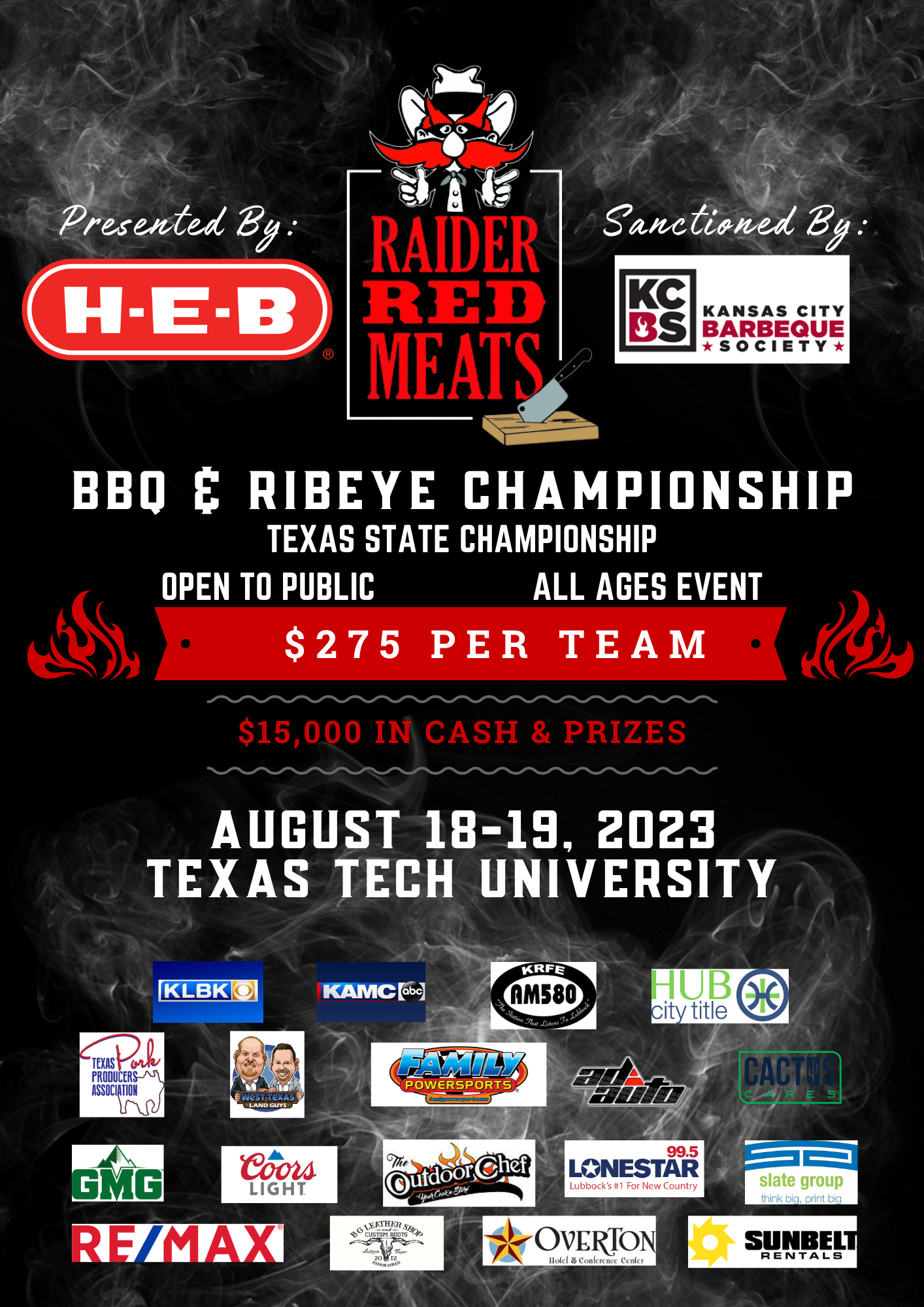 EVENT: Presented by H-E-B and sanctioned by KCBS the annual Raider Red Meats Barbeque and Ribeye Championship Cook-Off will be hosted at Texas Tech.