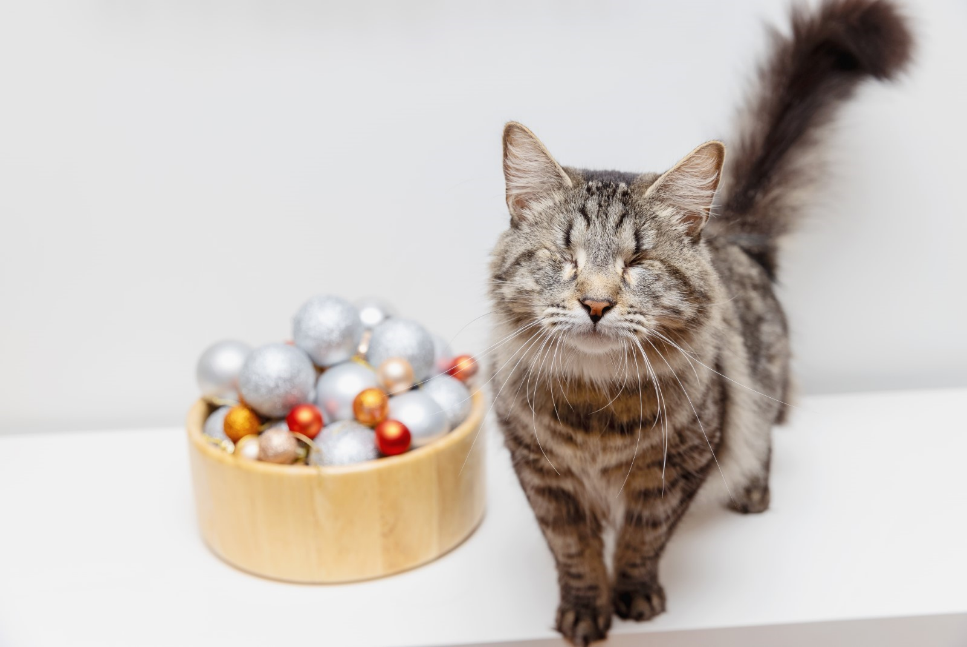 • Tinsel, ribbon, metal hooks, plastic and glass can obstruct or perforate the intestine of pets if ingested. Use an alternative such as paper and hang decorations where pets can’t reach.