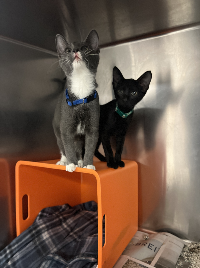 Wasabi (black) and Miso (grey) (siblings, 2.5 months old)