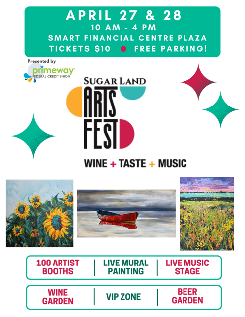 Join us for the Sugar Land Arts Festival, Saturday, April 27th & Sunday, April 28th, 2024 benefiting Sugar Land Cultural Arts Foundation!