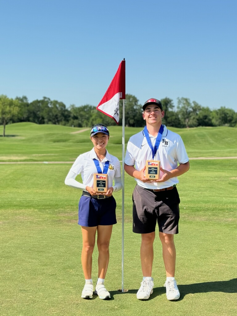 Sugar Land, TX – Two members of the Fort Bend Christian Academy Golf team went to the TAPPS 5A State Competition on May 6-7, 2024 and came back champions. Sophomore Jamison Louie was awarded first place or tournament champion for the girls, and Junior Eli Walker Campbell was awarded tournament champion for the boys. Louie shot a 72 on the first day and a 70 on the second day. Campbell shot a 64 and a 65. To view the official results, click here.