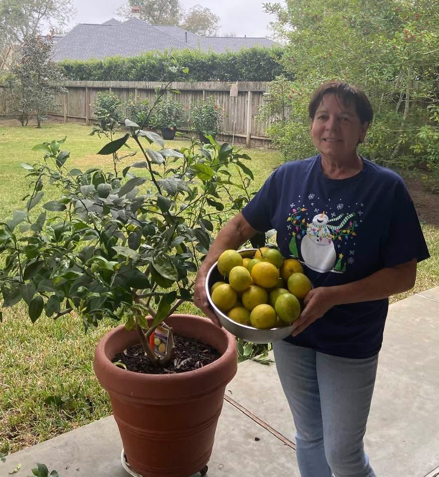 caption: Fort Bend County Master Gardener Deb Cooper said her little Meyer Lemon tree produced 33 huge lemons last year. This photo was taken in December 2024.