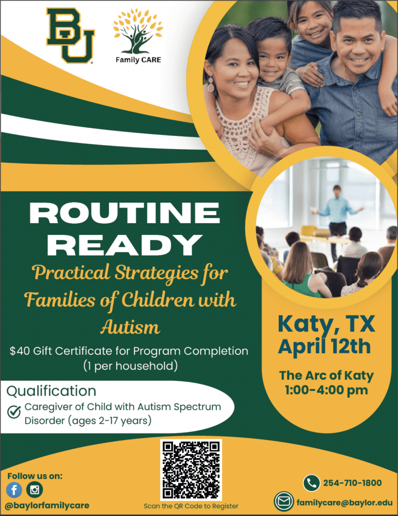 Katy, Texas – 12th April 2025 – The Family CARE Project at Baylor University will host "Routine Ready: Practical Strategies for Families of Children with Autism," a free training session designed for caregivers of children with autism spectrum disorder (ASD). The program aims to equip parents and guardians with effective techniques for managing daily routines.
