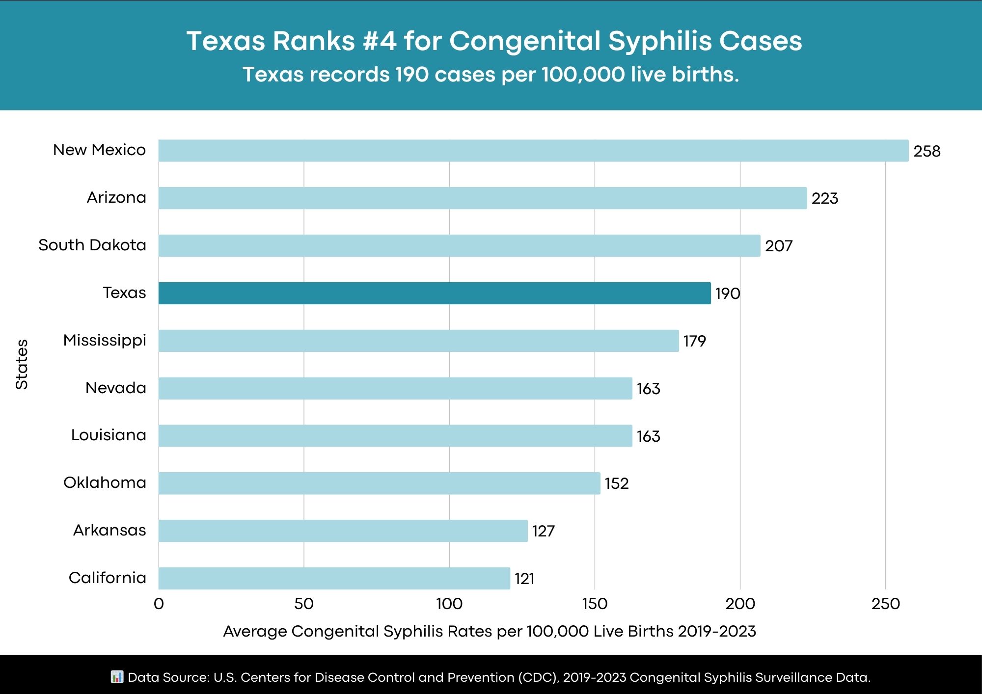 A new study reveals that Texas ranks fourth for congenital syphilis rate in the U.S.
