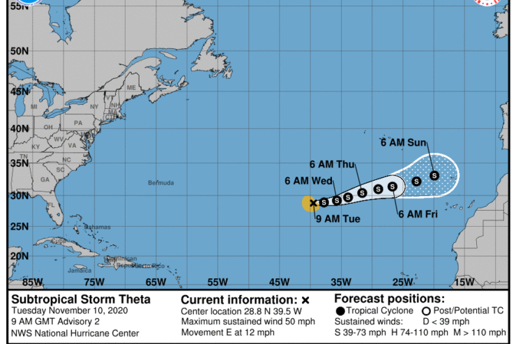 Record Breaking Subtropical Storm Theta Forms, No Threat to Texas